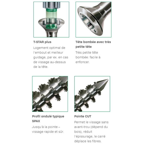 Spax Vis à Bois Tête Fraisée Inox Vis De Façade Bois Tête Fraisée Bombée – T-STAR Plus T15 – Inox A2- 4 X 45 Mm – Boîte De 100